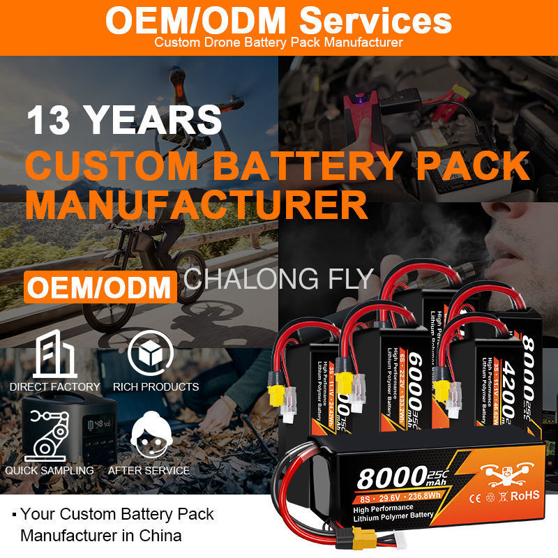 CHALONG FLY is a professional battery manufacturer for drones. Our products are widely used in model aircraft and vehicle batteries,fpv batteries, agricultural drone batteries, security and mapping drone batteries, etc. Our products have high energy density, high safety and long service life.