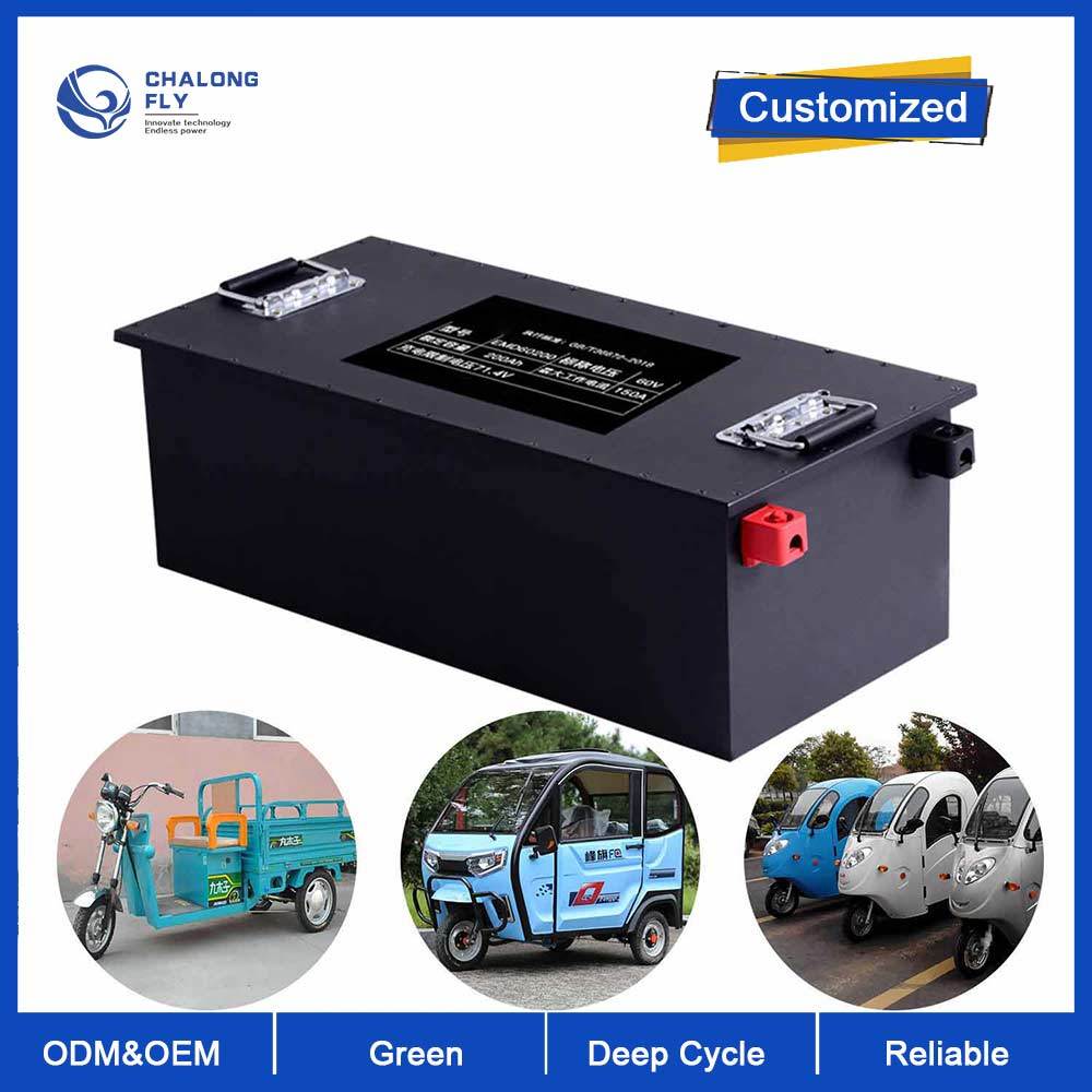 Αυτή η μπαταρία 72V 100Ah LiFePO4 είναι ειδικά σχεδιασμένη για ηλεκτρικά τρίκυκλοι, φορτηγά, επιβατικά tuk-tuks, και χαμηλής ταχύτητας ηλεκτρικά οχήματα.παρέχει εμβέλεια 150-200 km ανά φόρτιση και υποστηρίζει κινητήρες άνω των 3000WΤο ενσωματωμένο έξυπνο σύστημα BMS εξασφαλίζει ασφάλεια και μακροζωία 5-8 ετών ζωής, καθιστώντας το την ιδανική αντικατάσταση του μολύβδου.
